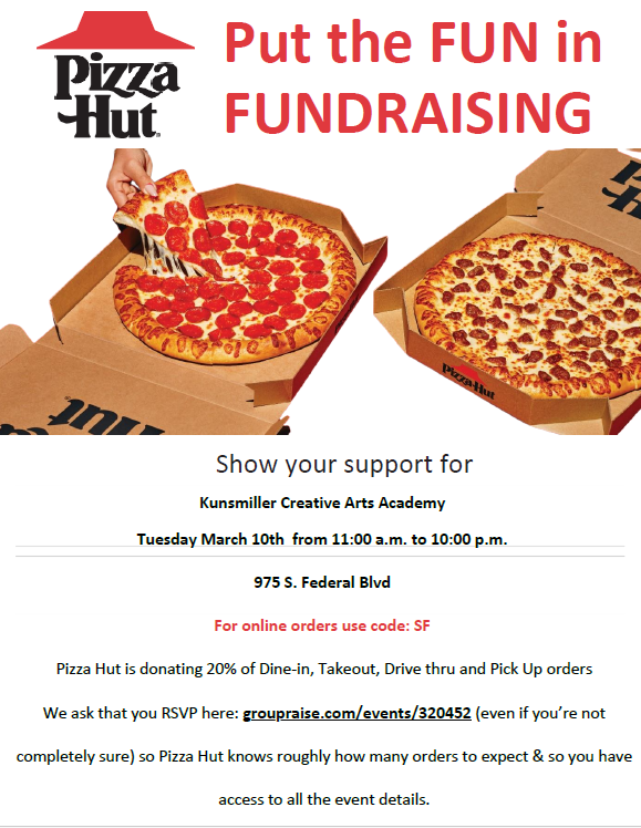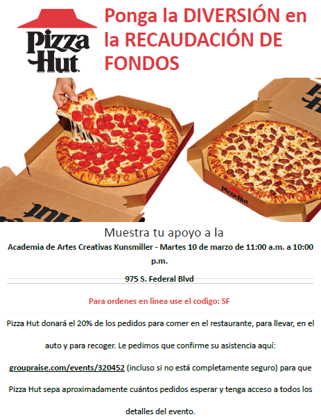 Pizza Hut Fundraising Use code: SF for online orders / Utilice el codigo SF para ordenar en linea